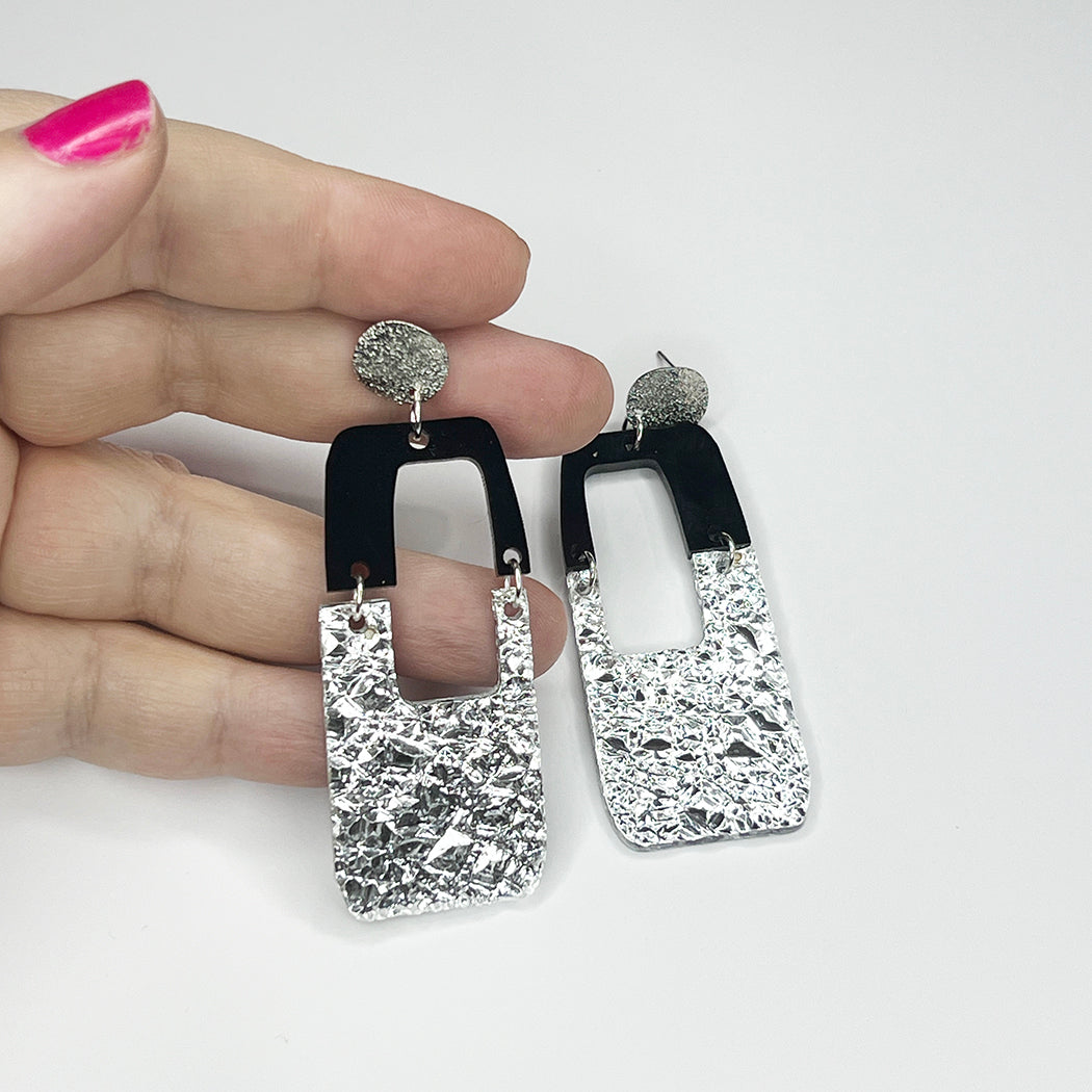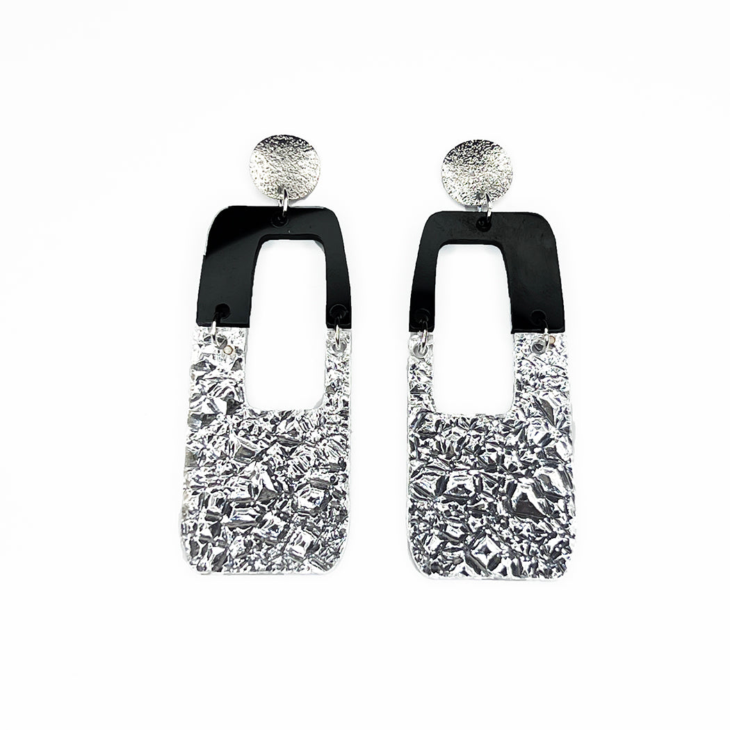 Take a leap of style with these Beatnik Cool Girl earrings. The black and silver combination adds an edgy touch to any outfit. Crafted from rippled silver acrylic and bold black, these earrings will elevate your fashion game.