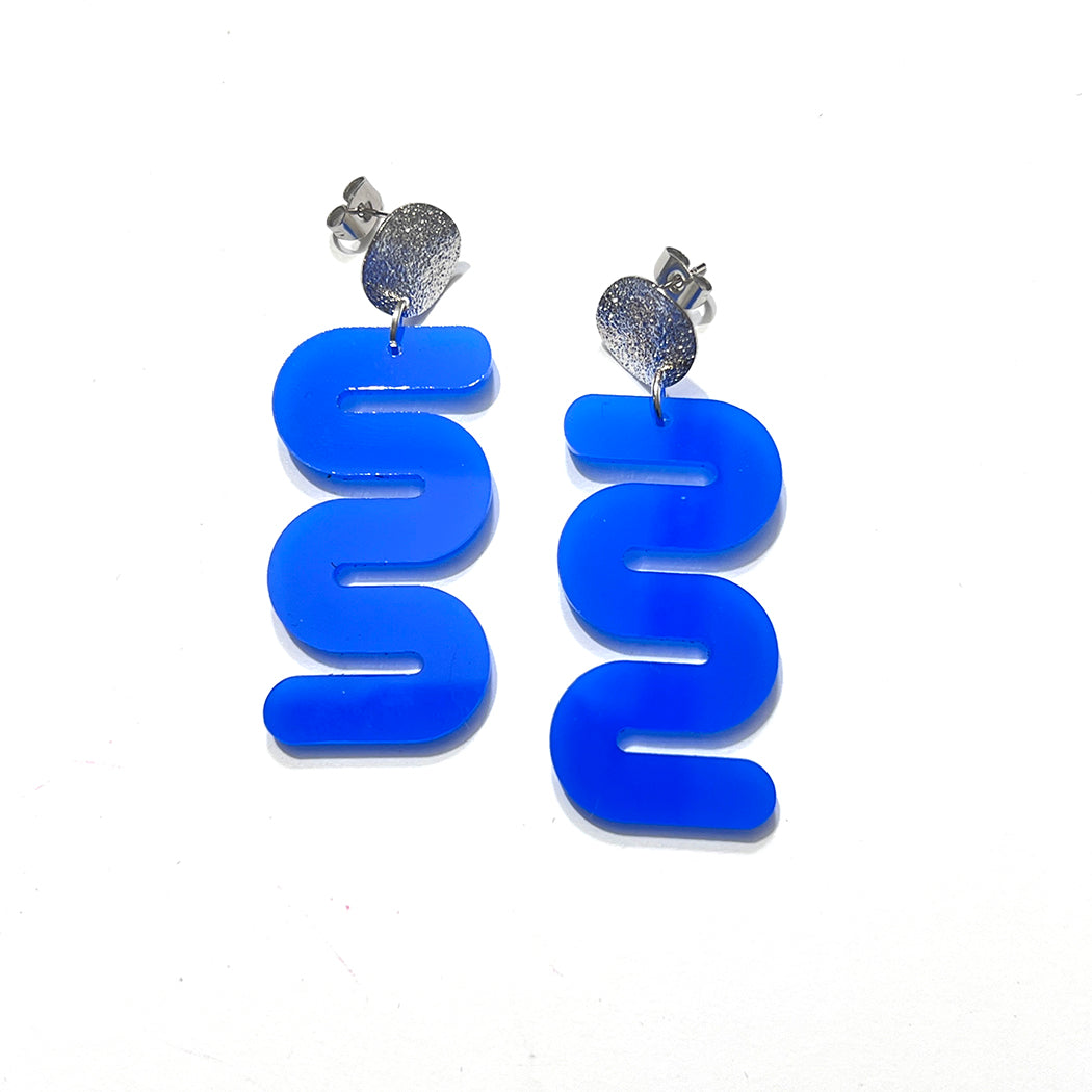 Make a statement with these unique blue squiggle earrings. Sophisticated and stylish, they are a delightful way to add a touch of color to any ensemble.