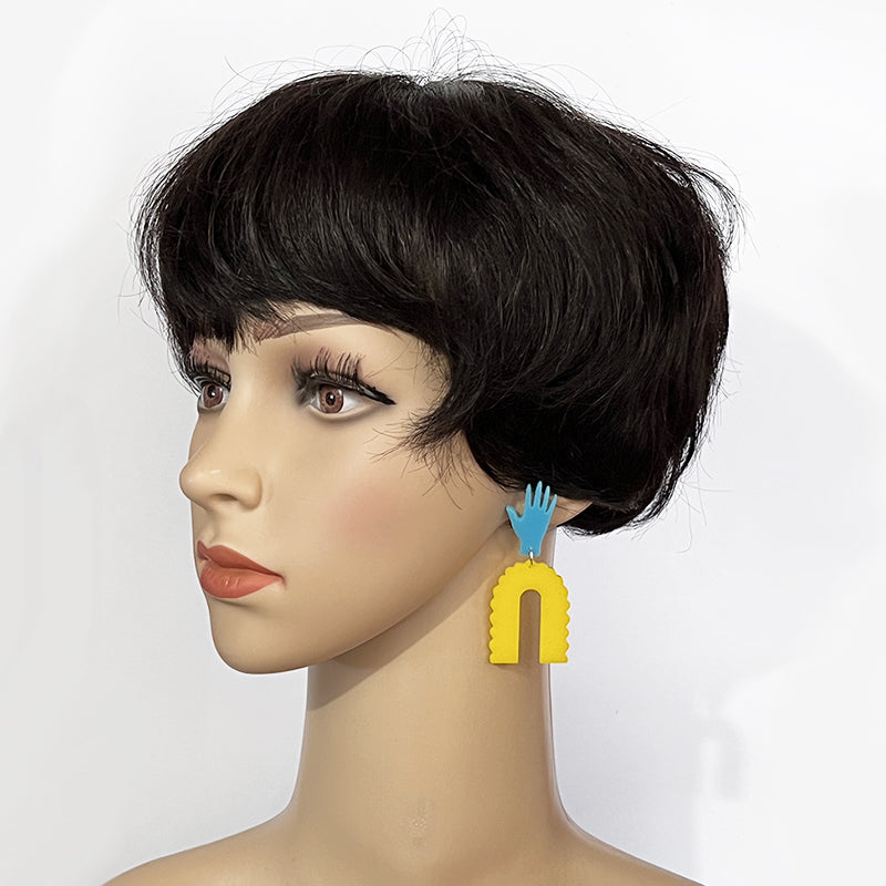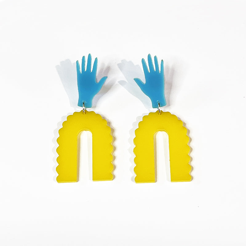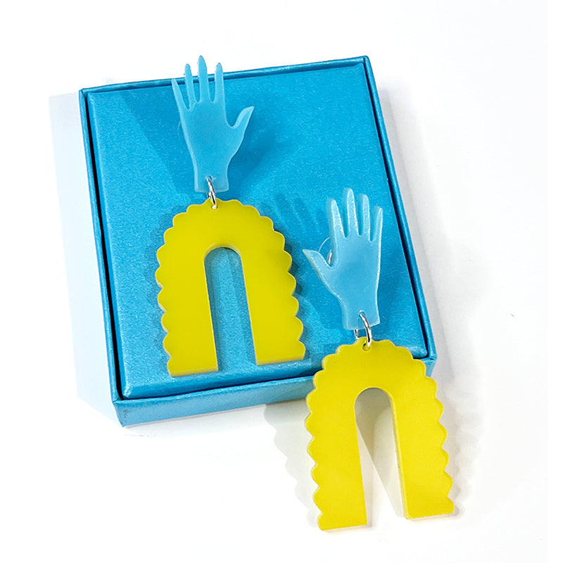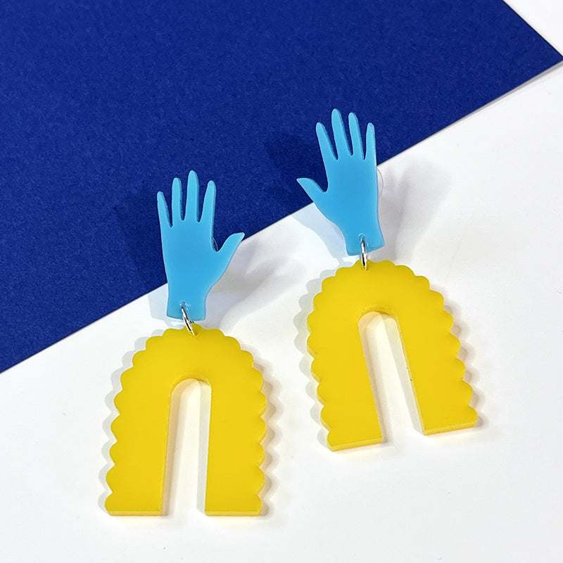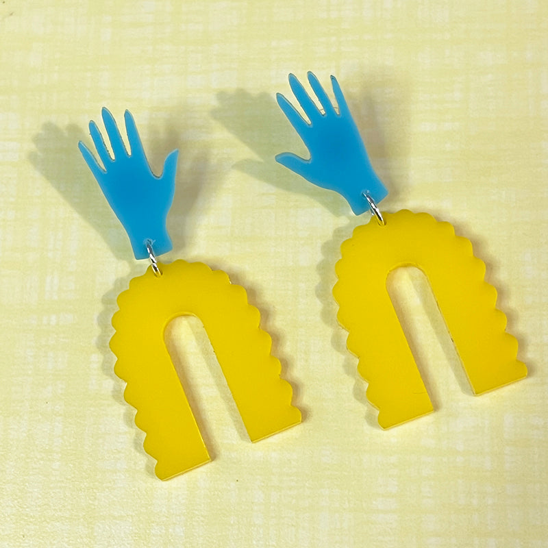 Frills and ruffles are always fun and flirty and these cute artist hand earrings are wearing their brightest frilly sleeves.