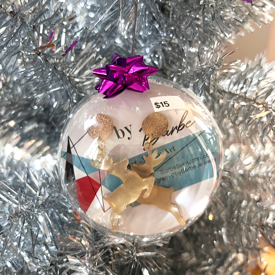 Captivating Retro Leaping Deer Earrings nestled in a practical plastic container that can be used again and again!