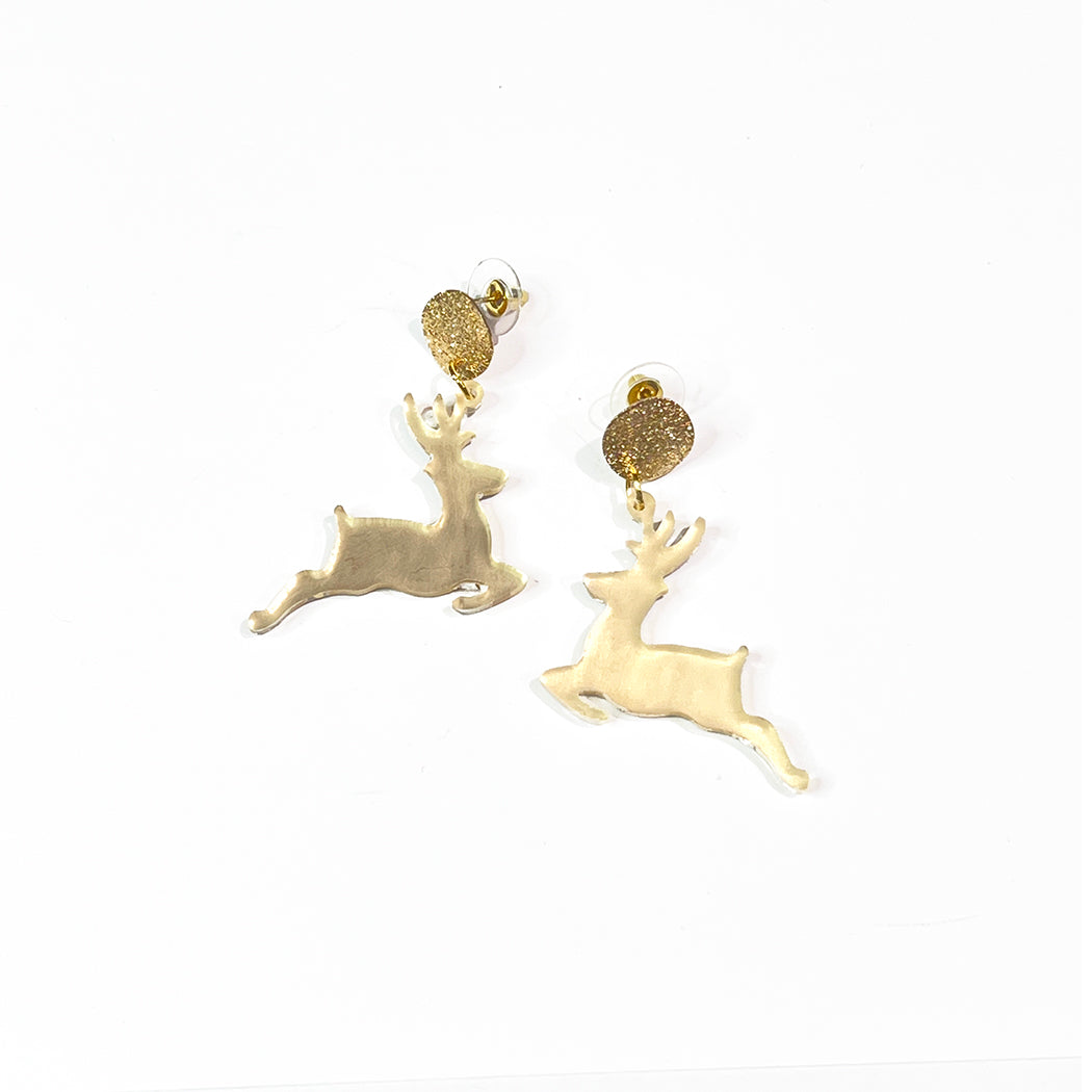 Frosted Gold Mirror Retro Leaping Deer Earrings