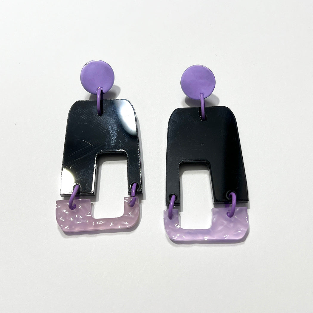 Embrace your unique style with these stunning Lilas la Nuit (Lilacs at night) Earrings, featuring midcentury modern rectangles. These earrings are a must-have for any fashion-forward individual who desires to make a statement.