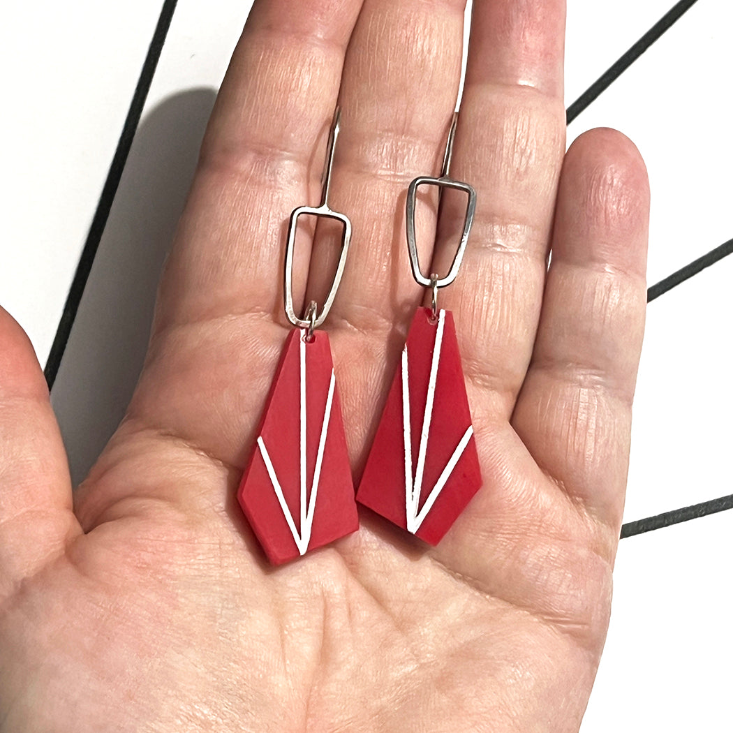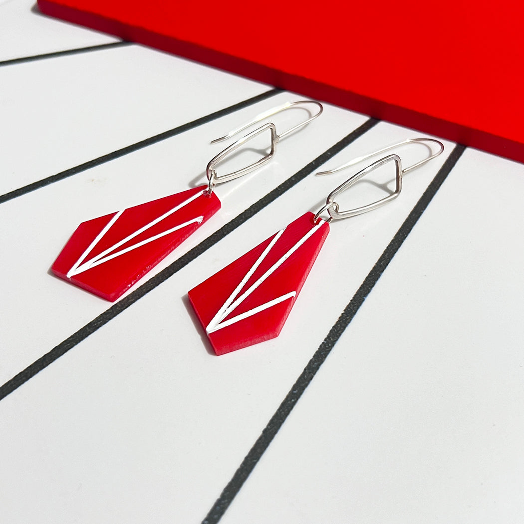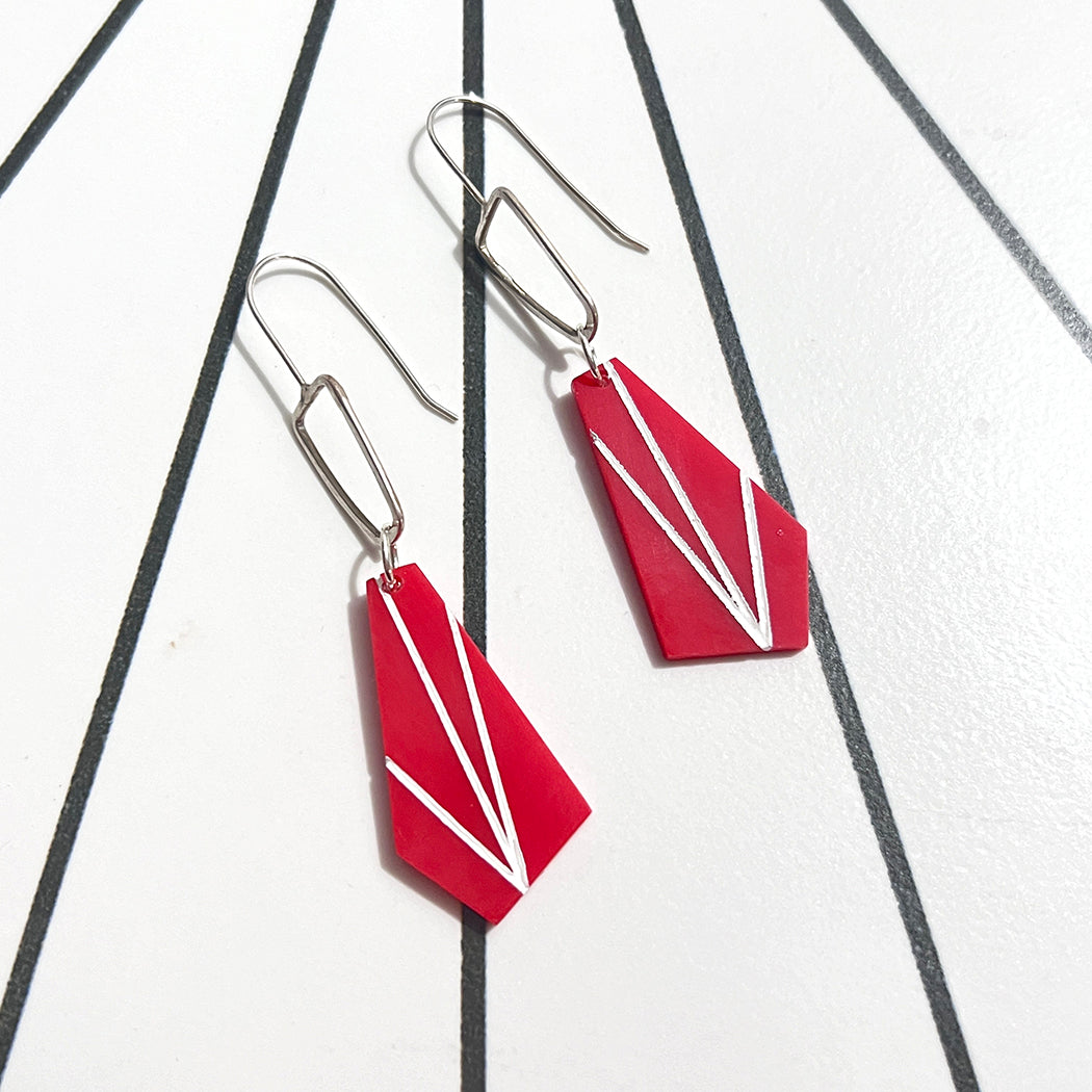 Red Trapezoid Earrings