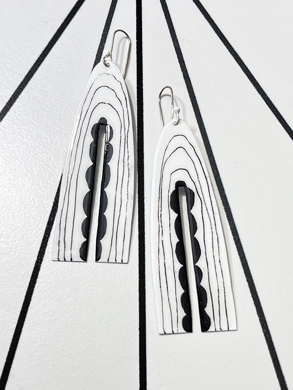 The Scalloped Earrings are both feminine and edgy. Walking the line between modern and classic, these earrings feature a one-of-a-kind organically drawn scalloped design on sterling silver ear hooks.