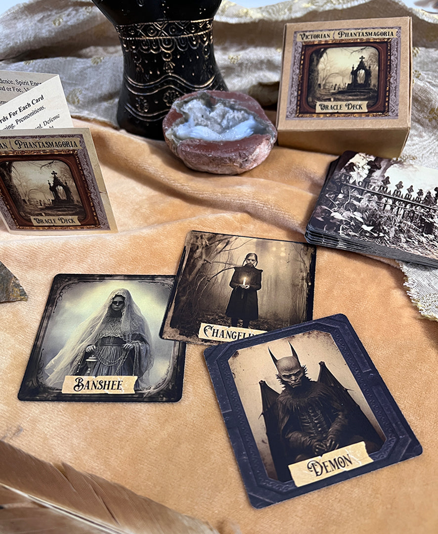 Unveil the veil between worlds and peer into the shadows with the Victorian Phantasmagoria Oracle Deck.